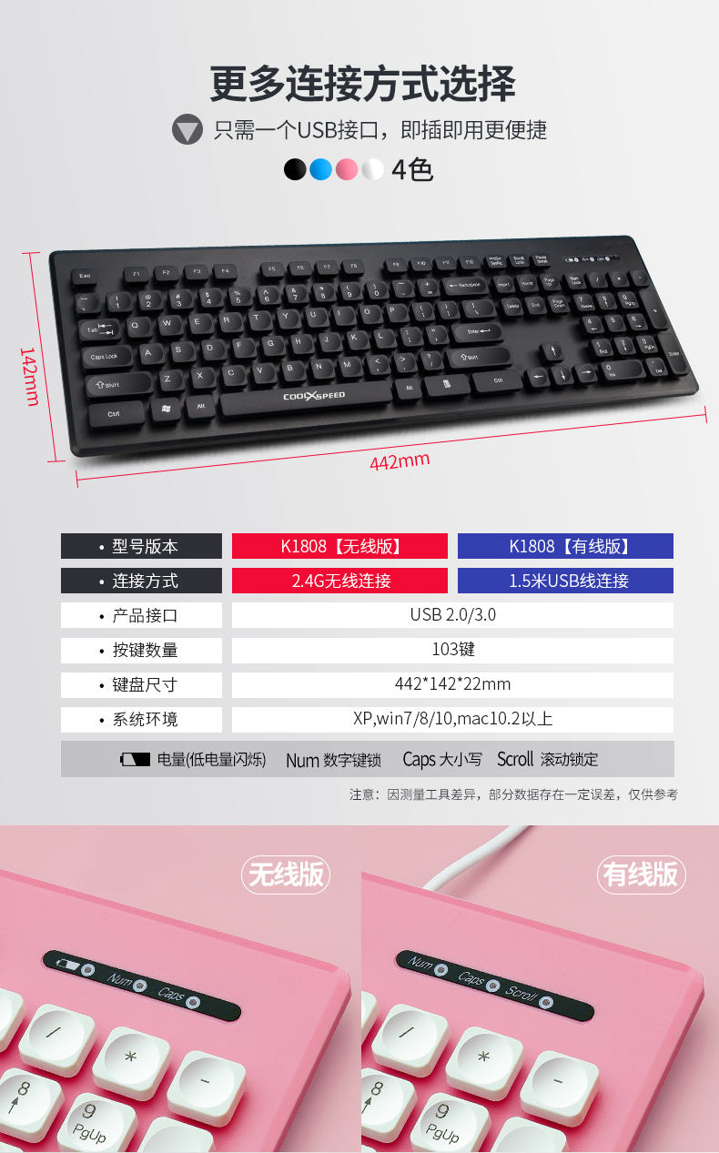 • 商品名称:悬浮巧克力键盘有线无线静音台式电脑联想惠普笔记本外接薄膜办公